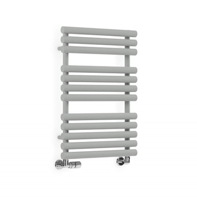 Terma aims to think differently when conceiving its towel rail designs and the Rolo Towel is no different with its super chunky 40mmk diameter bars creating a very sturdy looking towel rail design. The oversized bars on Rolo Towel help offer increased heat outputs meaning this design will suffice if your towel rail is the only heat source in the bathroom. The brackets on the Rolo are located on the rear of the uprights leaving the full width of the bars free for hanging towels. The Salt n Pepper colour from Terma has a matt, rough texture. Terma offers a 150x50mm colour chip of this finish should you wish to see the colour prior to purchase. Rolo Towel can also be fitted as dual fuel - whereby it can run on the central heating in the winter and as electric in the summer. You simply need a Terma heating element and the Terma Integrated Valve with Immersion Tube (no T piece required with this valve) to easily install as dual fuel (590h = 800w, 755h = 400w, 1085h = 600w, 1360h = 800w element) Rolo is part of a unique family of products where you can buy matching radiators (electric and central heating), mirror radiators and towel rails.